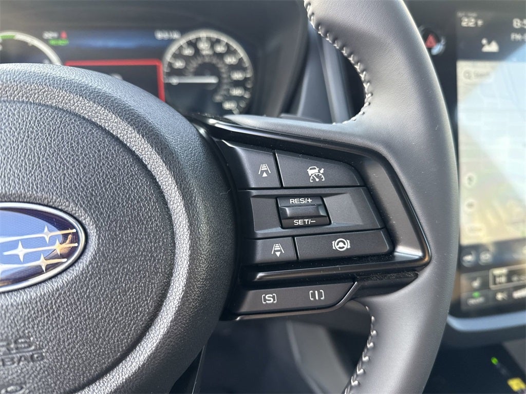 Standard Model, 2.5L 4-Cylinder DOHC 16V, 4-Wheel Disc Brakes, 6 Speakers, ABS brakes, Air Conditioning, Alloy wheels, AM/FM radio: SiriusXM with 360L, Anti-whiplash front head restraints, Auto High-beam Headlights, Automatic temperature control, Brake assist, Bumpers: body-color, Compass, Driver door bin, Driver vanity mirror, Dual front impact airbags, Dual front side impact airbags, Electronic Stability Control, Emergency communication system: MySubaru Safety (3-year free trial), Exterior Parking Camera Rear, Four wheel independent suspension, Front anti-roll bar, Front Bucket Seats, Front Center Armrest, Front dual zone A/C, Front fog lights, Front reading lights, Fully automatic headlights, Heated door mirrors, Heated Front Bucket Seats, Heated front seats, Illuminated entry, Knee airbag, LED Upgrade, Low tire pressure warning, Navigation system: TomTom Navigation w/what3words, Occupant sensing airbag, Outside temperature display, Overhead airbag, Overhead console, Panic alarm, Passenger door bin, Passenger vanity mirror, Power door mirrors, Power driver seat, Power Liftgate, Power moonroof: Panoramic, Power steering, Power windows, Premium Cloth Upholstery, Radio data system, Radio: Subaru 11.6 Multimedia Navigation System, Rear anti-roll bar, Rear seat center armrest, Rear window defroster, Rear window wiper, Remote keyless entry, Security system, Speed control, Speed-sensing steering, Splash Guards, Split folding rear seat, Spoiler, Steering wheel mounted audio controls, Tachometer, Telescoping steering wheel, Tilt steering wheel, Traction control, Trip computer, Variably intermittent wipers, and Wheels: 18 x 7.0 J Dark Metallic Aluminum-Alloy.