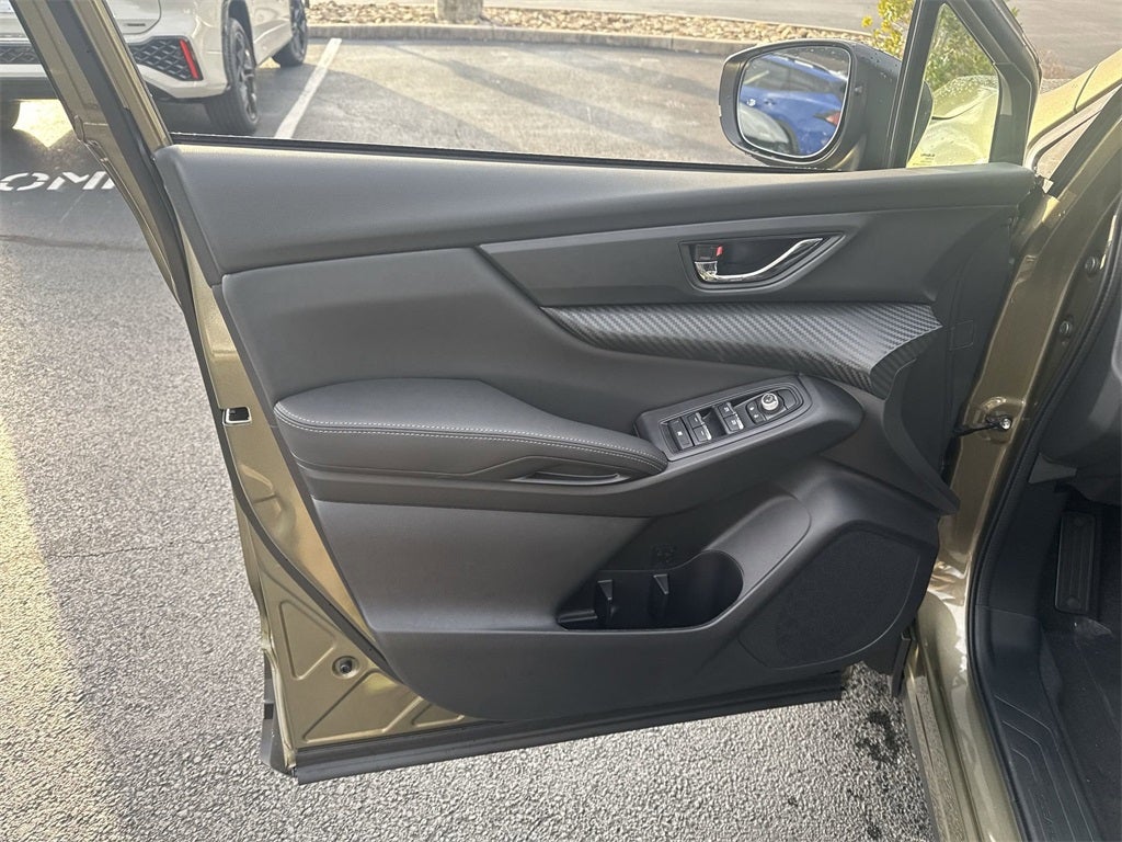 Standard Model, 3rd row seats: bench, 4-Wheel Disc Brakes, 6 Speakers, ABS brakes, Air Conditioning, All-Weather Floor Liners, Alloy wheels, AM/FM radio: SiriusXM with 360L, Apple CarPlay & Android Auto, Auto High-beam Headlights, Auto-Dimming Exterior Mirror with Approach Light, Automatic temperature control, Brake assist, Bumpers: body-color, Cargo Tray, Compass, Delay-off headlights, Driver door bin, Driver vanity mirror, Dual front impact airbags, Dual front side impact airbags, Electronic Stability Control, Emergency communication system: MySubaru Companion (5-years free), Exterior Parking Camera Rear, Four wheel independent suspension, Front anti-roll bar, Front Bucket Seats, Front Center Armrest, Front dual zone A/C, Front fog lights, Front reading lights, Fully automatic headlights, Heated door mirrors, Heated Front Bucket Seats, Heated front seats, Illuminated entry, Knee airbag, Leather Shift Knob, Leather steering wheel, LED Cargo Area Lighting, Low tire pressure warning, Occupant sensing airbag, Outside temperature display, Overhead airbag, Overhead console, Panic alarm, Passenger door bin, Passenger vanity mirror, Power door mirrors, Power driver seat, Power Liftgate, Power steering, Power windows, Radio data system, Radio: Subaru 11.6 Multimedia Plus System, Rear air conditioning, Rear anti-roll bar, Rear reading lights, Rear seat center armrest, Rear window defroster, Rear window wiper, Reclining 3rd row seat, Remote keyless entry, Security system, Speed control, Speed-sensing steering, Split folding rear seat, Spoiler, StarTex-Trimmed Upholstery, Steering wheel mounted audio controls, Tachometer, Telescoping steering wheel, Tilt steering wheel, Traction control, Trip computer, Turn signal indicator mirrors, USB Charging Cable Set, Variably intermittent wipers, and Wheels: 18 x 7.5 J Black Finish Aluminum Alloy.