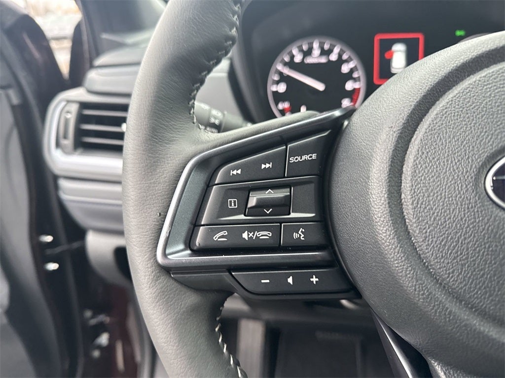Standard Model, 4-Wheel Disc Brakes, 6 Speakers, ABS brakes, Air Conditioning, Alloy wheels, AM/FM radio: SiriusXM with 360L, Anti-whiplash front head restraints, Auto High-beam Headlights, Auto-Dimming Exterior Mirror with Approach Light, Auto-Dimming Mirror with Compass and HomeLink, Automatic temperature control, Brake assist, Bumpers: body-color, Driver door bin, Driver vanity mirror, Dual front impact airbags, Dual front side impact airbags, Electronic Stability Control, Emergency communication system: MySubaru Companion (5-years free), Exterior Parking Camera Rear, Four wheel independent suspension, Front anti-roll bar, Front Bucket Seats, Front Center Armrest, Front dual zone A/C, Front fog lights, Front reading lights, Fully automatic headlights, Heated door mirrors, Heated Front Bucket Seats, Heated front seats, Heated steering wheel, Illuminated entry, Knee airbag, Leather steering wheel, Low tire pressure warning, Occupant sensing airbag, Outside temperature display, Overhead airbag, Overhead console, Panic alarm, Passenger door bin, Passenger vanity mirror, Perforated Leather-Trimmed Upholstery, Power door mirrors, Power driver seat, Power Liftgate, Power moonroof: Panoramic, Power passenger seat, Power steering, Power windows, Radio data system, Radio: Subaru 11.6 Multimedia Plus System, Rain sensing wipers, Rear anti-roll bar, Rear seat center armrest, Rear window defroster, Rear window wiper, Remote keyless entry, Security system, Speed control, Speed-sensing steering, Splash Guards, Split folding rear seat, Spoiler, Steering wheel mounted audio controls, Tachometer, Telescoping steering wheel, Tilt steering wheel, Traction control, Trip computer, Turn signal indicator mirrors, Variably intermittent wipers, and Wheels: 18 x 7.0 J Dark Metallic Aluminum-Alloy.