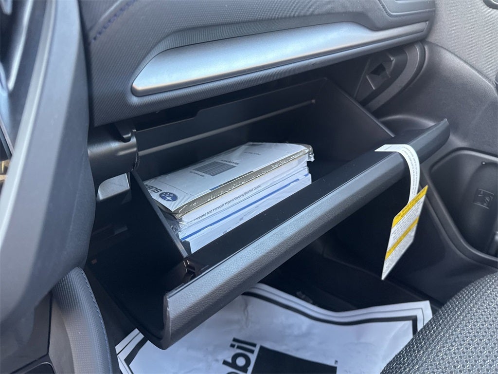 Base/Premium Plus Package (All-Weather Floor Liners, Auto-Dimming Mirror with Compass and HomeLink, Cargo Net, and Rear Bumper Cover), Power Rear Gate and Blind Spot Detection with Rear Cross Traffic Alert (Automatic Emergency Steering, Blind-Spot Detection (BSD)/RCTA System, Emergency Lane Keep Assist, and Power Rear Gate), 4-Wheel Disc Brakes, 6 Speakers, ABS brakes, Air Conditioning, Alloy wheels, AM/FM radio: SiriusXM with 360L, Anti-whiplash front head restraints, Auto High-beam Headlights, Automatic temperature control, Brake assist, Bumpers: body-color, Driver door bin, Driver vanity mirror, Dual front impact airbags, Dual front side impact airbags, Electronic Stability Control, Emergency communication system: MySubaru Companion (5-years free), Exterior Parking Camera Rear, Four wheel independent suspension, Front anti-roll bar, Front Bucket Seats, Front Center Armrest, Front dual zone A/C, Front fog lights, Front reading lights, Fully automatic headlights, Heated door mirrors, Heated Front Bucket Seats, Heated front seats, Illuminated entry, Knee airbag, Leather steering wheel, Low tire pressure warning, Occupant sensing airbag, Outside temperature display, Overhead airbag, Overhead console, Panic alarm, Passenger door bin, Passenger vanity mirror, Power door mirrors, Power driver seat, Power moonroof: Panoramic, Power steering, Power windows, Premium Textured Cloth Upholstery, Radio data system, Radio: Subaru 11.6 Multimedia Plus System, Rear anti-roll bar, Rear seat center armrest, Rear window defroster, Rear window wiper, Remote keyless entry, Security system, Speed control, Speed-sensing steering, Split folding rear seat, Spoiler, Steering wheel mounted audio controls, Tachometer, Telescoping steering wheel, Tilt steering wheel, Traction control, Trip computer, Variably intermittent wipers, and Wheels: 17 x 7.0 J Dark Metallic Aluminum-Alloy.