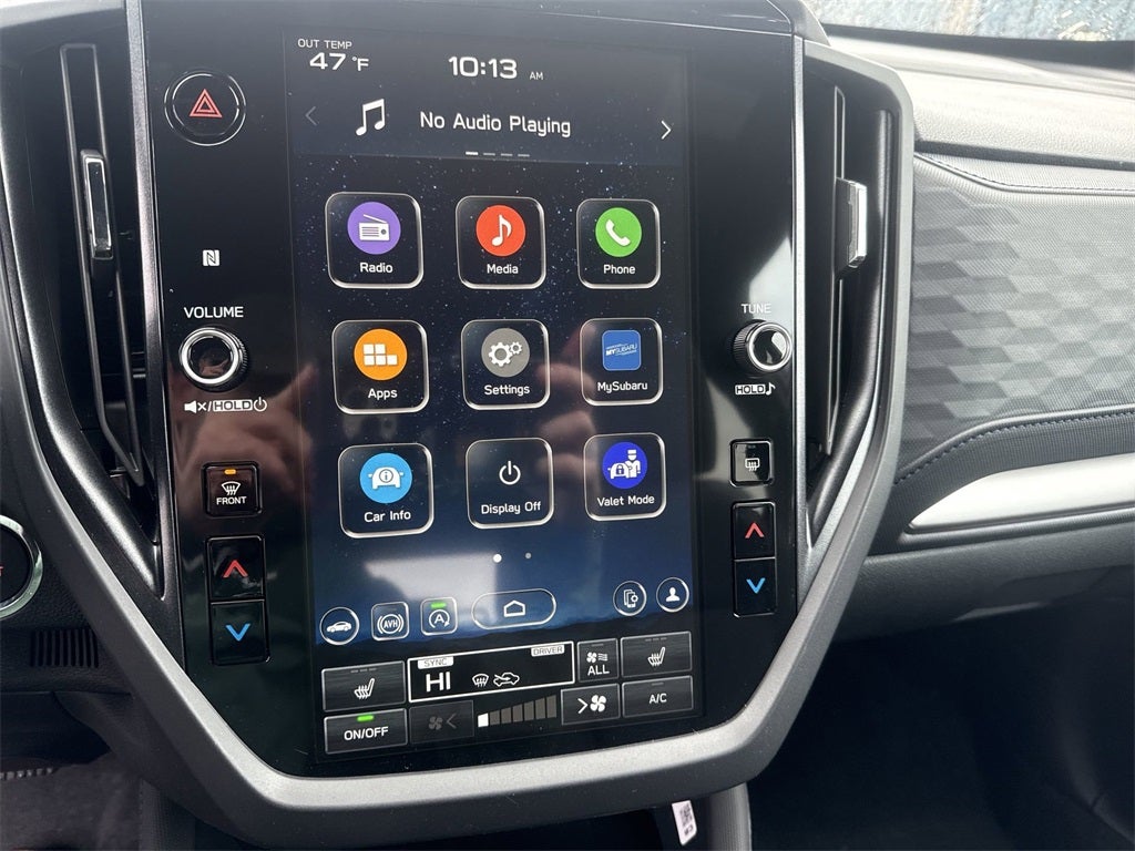 - Radio: Subaru 11.6" Multimedia Plus System -inc: valet mode, integrated center information display, AM/FM stereo HD Radio, multi-touch gesture high resolution display screen, voice activated controls, Bluetooth® audio streaming and hands-free phone connectivity w/SMS text messaging (refer to Subaru.com for cellphone compatibility), iPod control capability, smartphone integration: Android Auto and Apple CarPlay w/full screen view and wireless connection, SiriusXM satellite radio w/360L (free 4-month trial subscription included), USB and Over The Air (OTA) audio system update, steering wheel controls, 6 speakers, 3.5mm auxiliary input jack and roof mounted audio and satellite antenna