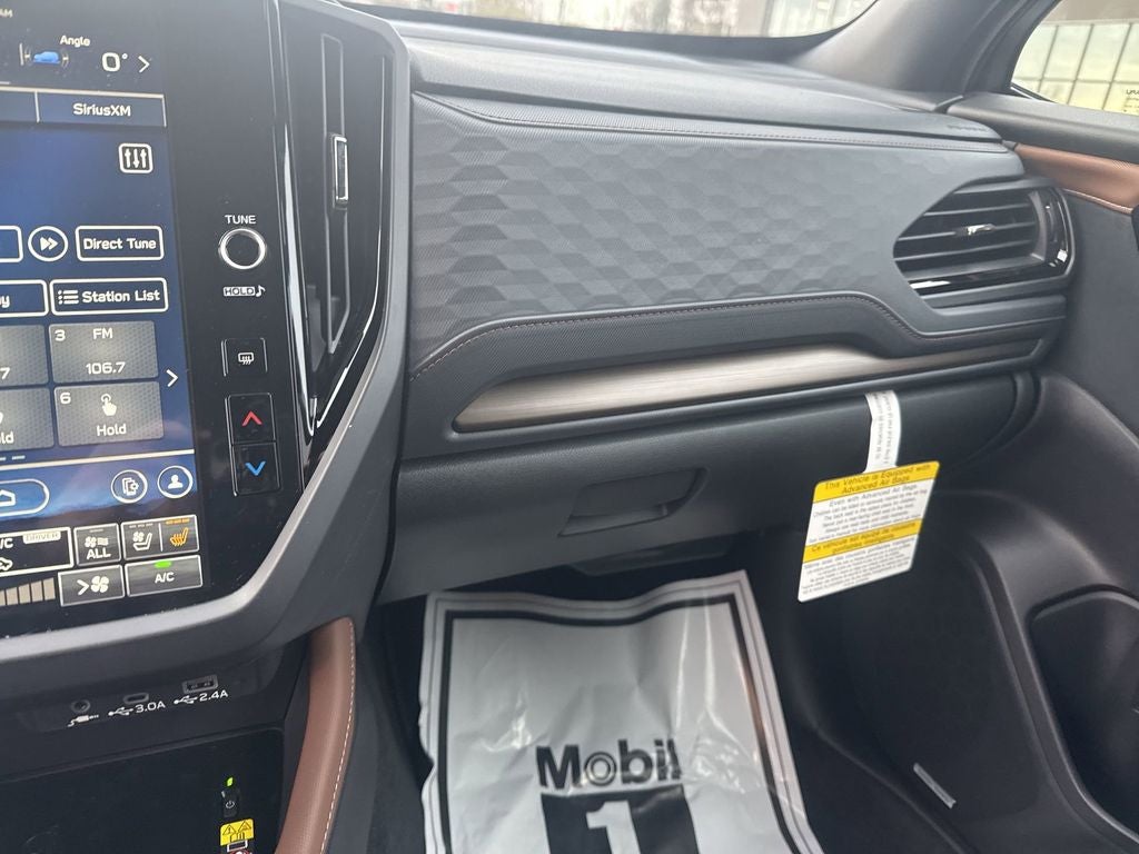 Standard Model, 11 Speakers, 4-Wheel Disc Brakes, ABS brakes, Air Conditioning, Alloy wheels, AM/FM radio: SiriusXM with 360L, Anti-whiplash front head restraints, Auto High-beam Headlights, Auto-Dimming Exterior Mirror with Approach Light, Automatic temperature control, Brake assist, Bumpers: body-color, Cargo Net, Cargo Tray, Door Projector Lights, Driver door bin, Driver vanity mirror, Dual front impact airbags, Dual front side impact airbags, Electronic Stability Control, Emergency communication system: MySubaru Companion (5-years free), Exterior Parking Camera Rear, Four wheel independent suspension, Front anti-roll bar, Front Bucket Seats, Front Center Armrest, Front dual zone A/C, Front fog lights, Front reading lights, Fully automatic headlights, harman/kardon® Speakers, Heads-Up Display, Heated and Ventilated Front Bucket Seats, Heated door mirrors, Heated front seats, Heated rear seats, Heated steering wheel, HVAC memory, Illuminated entry, Knee airbag, Leather Shift Knob, Leather steering wheel, Low tire pressure warning, Memory seat, Navigation System, Occupant sensing airbag, Outside temperature display, Overhead airbag, Overhead console, Panic alarm, Passenger door bin, Passenger vanity mirror, Perforated Leather-Trimmed Upholstery, Power door mirrors, Power driver seat, Power Liftgate, Power moonroof: Panoramic, Power passenger seat, Power steering, Power windows, Radio data system, Radio: Subaru 11.6 Multimedia Navigation System, Rain sensing wipers, Rear anti-roll bar, Rear seat center armrest, Rear window defroster, Rear window wiper, Remote keyless entry, Security system, Speed control, Speed-sensing steering, Splash Guards, Split folding rear seat, Spoiler, Steering wheel mounted audio controls, Tachometer, Telescoping steering wheel, Tilt steering wheel, Traction control, Trip computer, Turn signal indicator mirrors, Variably intermittent wipers, Ventilated front seats, and Wheels: 19 x 7.5 J Dark Gray Aluminum-Alloy.