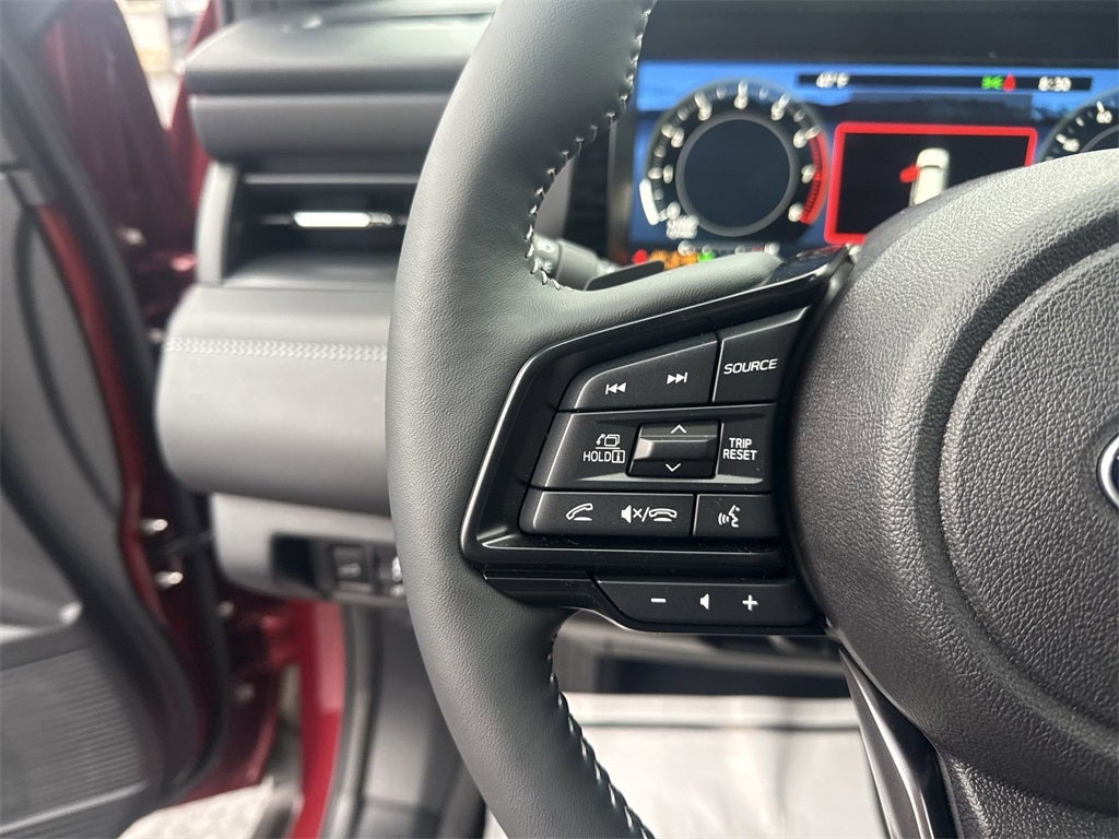 Standard Model, 12 Speakers, 4-Wheel Disc Brakes, ABS brakes, Aero Crossbar Set, Air Conditioning, All-Weather Floor Liners, Alloy wheels, AM/FM radio: SiriusXM with 360L, Anti-whiplash front head restraints, Auto High-beam Headlights, Auto-Dimming Exterior Mirror with Approach Light, Auto-dimming Rear-View mirror, Automatic temperature control, Blind Spot Warning, Brake assist, Bumpers: body-color, Cargo Net, Compass, Driver door bin, Driver vanity mirror, Dual front impact airbags, Dual front side impact airbags, Electronic Stability Control, Emergency communication system: MySubaru Companion (5-years free), Exterior Parking Camera Rear, Four wheel independent suspension, Front anti-roll bar, Front Bucket Seats, Front Center Armrest w/Storage, Front dual zone A/C, Front fog lights, Front reading lights, Fully automatic headlights, Garage door transmitter: HomeLink, harman/kardon® Speakers, Heated and Ventilated Front Bucket Seats, Heated door mirrors, Heated front seats, Heated rear seats, Heated steering wheel, HVAC memory, Illuminated entry, Knee airbag, Leather steering wheel, Low tire pressure warning, Memory seat, Nappa Leather-Trimmed Perforated Upholstery, Navigation system: MySubaru Navigator (1-year trial), Occupant sensing airbag, Outside temperature display, Overhead airbag, Overhead console, Panic alarm, Passenger door bin, Passenger vanity mirror, Power door mirrors, Power driver seat, Power Liftgate, Power moonroof, Power passenger seat, Power steering, Power windows, Radio: Subaru 12.1 Multimedia System with Navigation, Rain sensing wipers, Rear anti-roll bar, Rear Bumper Cover, Rear seat center armrest, Rear window defroster, Rear window wiper, Remote keyless entry, Security system, Speed control, Speed-sensing steering, Split folding rear seat, Spoiler, Steering wheel mounted audio controls, Tachometer, Telescoping steering wheel, Tilt steering wheel, Traction control, Trip computer, Turn signal indicator mirrors, Variably intermittent wipers, Ventilated front seats, and Wheels: 19 x 7J Black Aluminum-Alloy.