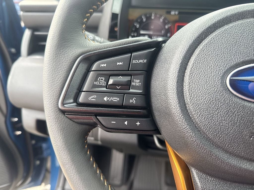 Moonroof and Navigation and Surround View Monitor and Ventilated Seats (Heated and Ventilated Front Bucket Seats, Nappa Leather Upholstery, Power Moonroof, Power-Folding Heated Exterior Mirrors, Radio: Subaru 12.1 Multimedia System with Navigation, and Surround View Monitor), 12 Speakers, 4-Wheel Disc Brakes, ABS brakes, Air Conditioning, Alloy wheels, AM/FM radio: SiriusXM with 360L, Anti-whiplash front head restraints, Auto High-beam Headlights, Automatic temperature control, Blind Spot Warning, Brake assist, Bumpers: body-color, Driver door bin, Driver vanity mirror, Dual front impact airbags, Dual front side impact airbags, Electronic Stability Control, Emergency communication system: MySubaru Companion (5-years free), Exterior Parking Camera Rear, Four wheel independent suspension, Front anti-roll bar, Front Bucket Seats, Front Center Armrest w/Storage, Front dual zone A/C, Front fog lights, Front reading lights, Fully automatic headlights, harman/kardon® Speakers, Heated door mirrors, Heated Front Bucket Seats, Heated front seats, Heated rear seats, Heated steering wheel, HVAC memory, Illuminated entry, Knee airbag, Leather Shift Knob, Leather steering wheel, Low tire pressure warning, Occupant sensing airbag, Outside temperature display, Overhead airbag, Overhead console, Panic alarm, Passenger door bin, Passenger vanity mirror, Power door mirrors, Power driver seat, Power Liftgate, Power steering, Power windows, Radio: Subaru 12.1 Multimedia System, Rain sensing wipers, Rear anti-roll bar, Rear seat center armrest, Rear window defroster, Rear window wiper, Remote keyless entry, Security system, Speed control, Speed-sensing steering, Split folding rear seat, Spoiler, StarTex-Trimmed Upholstery, Steering wheel mounted audio controls, Tachometer, Telescoping steering wheel, Tilt steering wheel, Traction control, Trip computer, Turn signal indicator mirrors, Variably intermittent wipers, and Wheels: 17 x 7J Matte Black Finish Aluminum-Alloy.