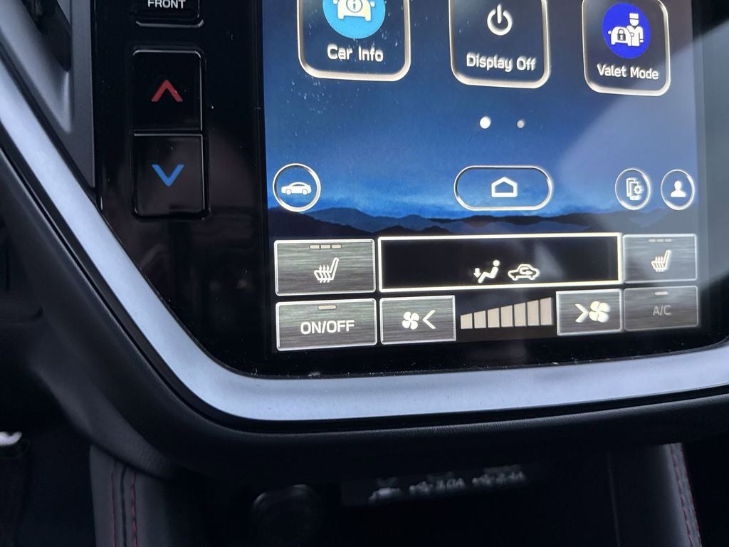 Harman Kardon and Moonroof (Harman/Kardon Speaker System and Power Tilt Up Moonroof), 4-Wheel Disc Brakes, 6 Speakers, ABS brakes, Air Conditioning, Alloy wheels, AM/FM radio: SiriusXM with 360L, Auto High-beam Headlights, Auto-Dimming Mirror with Compass and HomeLink, Automatic temperature control, Brake assist, Bumpers: body-color, Driver door bin, Driver vanity mirror, Dual front impact airbags, Dual front side impact airbags, Electronic Stability Control, Emergency communication system, Exterior Parking Camera Rear, Four wheel independent suspension, Front anti-roll bar, Front Bucket Seats, Front Center Armrest, Front dual zone A/C, Front fog lights, Front reading lights, Fully automatic headlights, Heated door mirrors, Heated front seats, Illuminated entry, Knee airbag, Leather Shift Knob, Leather steering wheel, Low tire pressure warning, Occupant sensing airbag, Outside temperature display, Overhead airbag, Overhead console, Panic alarm, Passenger door bin, Passenger vanity mirror, Performance Design Heated Front Bucket Seats, Power door mirrors, Power steering, Power windows, Premium Cloth Upholstery with Red Stitching, Radio data system, Radio: Subaru 11.6 Multimedia Plus System, Rear anti-roll bar, Rear seat center armrest, Rear window defroster, Remote keyless entry, Security system, Speed control, Speed-sensing steering, Split folding rear seat, Spoiler, Sport steering wheel, Steering wheel mounted audio controls, STI Short Throw Shifter, Tachometer, Telescoping steering wheel, Tilt steering wheel, Traction control, Trip computer, Variably intermittent wipers, and Wheels: 18 x 8.5 Dark Gray Finish Aluminum Alloy.